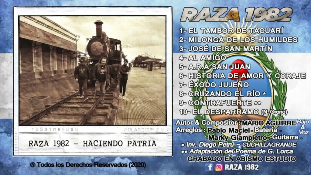 Es un Trío de METAL PESADO ARGENTINO, del Noroeste del Gran Buenos Aires, Argentina, formado por MARIO AGUIRRE (Bajo & Voz) ; PABLO MACIEL (Batería) y MARKY GIAMPIETRO (Guitarra). RAZA 1982 profundiza el Sentimiento Nacional con un particular mensaje expresado en “Modo Argentino”, de gran contenido social, incluyendo la problemática local en su propuesta y todo ello mezclado con un sonido crudo y directo.
