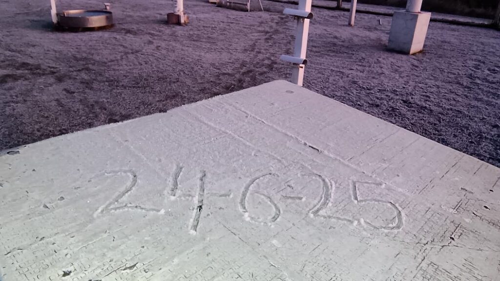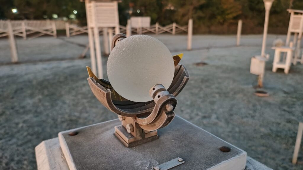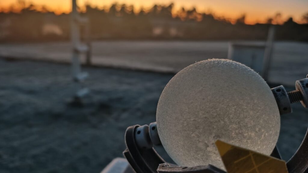 En el municipio este martes se registraron intensas heladas, con escarcha de cinco centímetros sobre la superficie. La temperatura marcó 7 grados bajo cero (-7º). Las imágenes corresponden a la Estación agrometeorológica en INTA Cerro Azul.