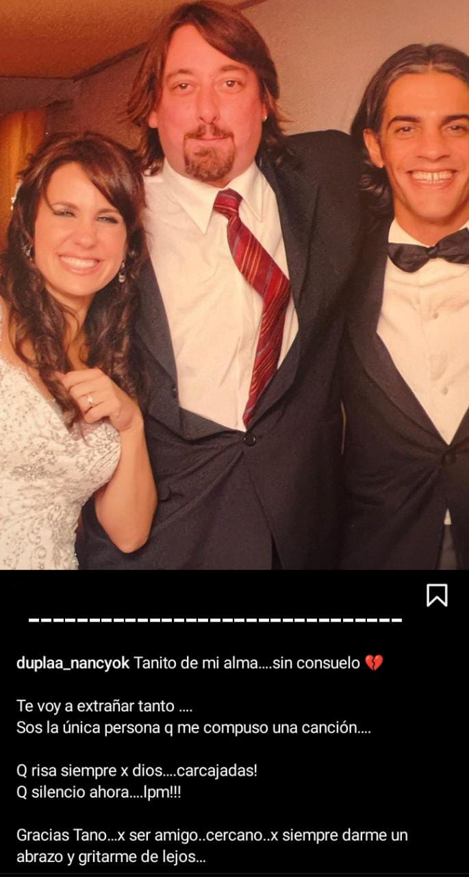 Mientras recibía el pésame y mensajes de consuelo de sus seguidores, Nancy continuó escribiendo: «Te adoro para siempre mi Tano. Viniste a mi casorio y te pusiste un traje: eso es amor verdadero. Para siempre en mí». ¡Mucha fuerza!