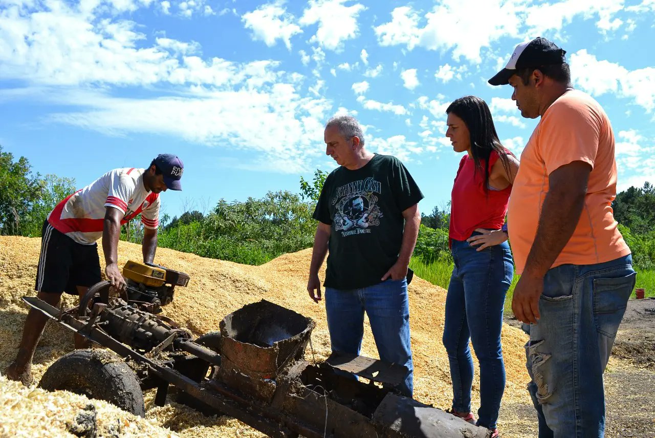 Junto a Hugo Passalacqua, pusieron en funcionamiento la máquina que desde ahora llevará un motor explos 13.0 que permitirá aliviar el trabajo manual y duplicar la producción.