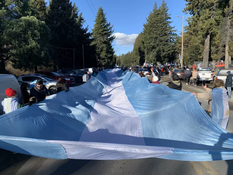 En coincidencia con el Día del Ejército Argentino, un numeroso grupo de vecinos se concentró sobre el kilómetro 8 de la Avenida Bustillo para manifestarse en contra de las políticas del gobierno nacional en relación a los reclamos de tierras por parte de comunidades mapuches en la zona.