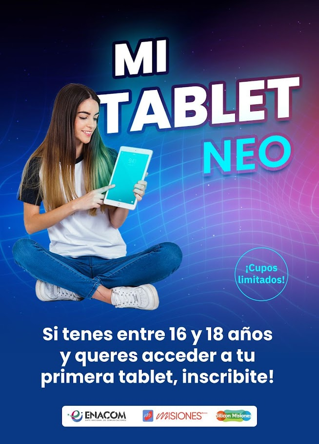 Mi Primer Tablet Neo es el nuevo programa del Silicon Misiones, en colaboración con el Ente Nacional de Comunicaciones (Enacom). Apunta a que los jóvenes misioneros de entre 16 y 18 años puedan adquirir su primera tablet. La iniciativa busca promover la digitalizació y potenciar la conectividad, al igual que las herramientas de estudio. Apunta también a que los jóvenes se familiaricen con las nuevas tecnologías tanto en el ámbito laboral como en la educación.